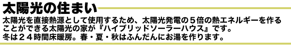 太陽光住まいは、暖房のいらない季節には、太陽熱で370リットルのお湯を作るからガス料金・電気料金がお得です。